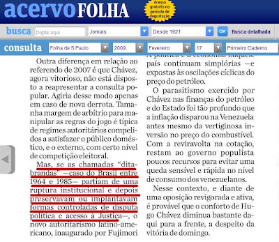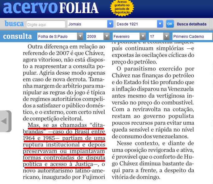 Em realidade é até justificável que, uma vez percebido o erro de ajudar a ditadura, você chame de Ditabranda, como quem tenta pagar da memória, do legado, as mazelas causadas por um erro crasso como este. É bem verdade que assumir os erros não é o caso da grande ImprenÇa, motivo pelo qual seguem as reiteradas amenizações à ditadura.