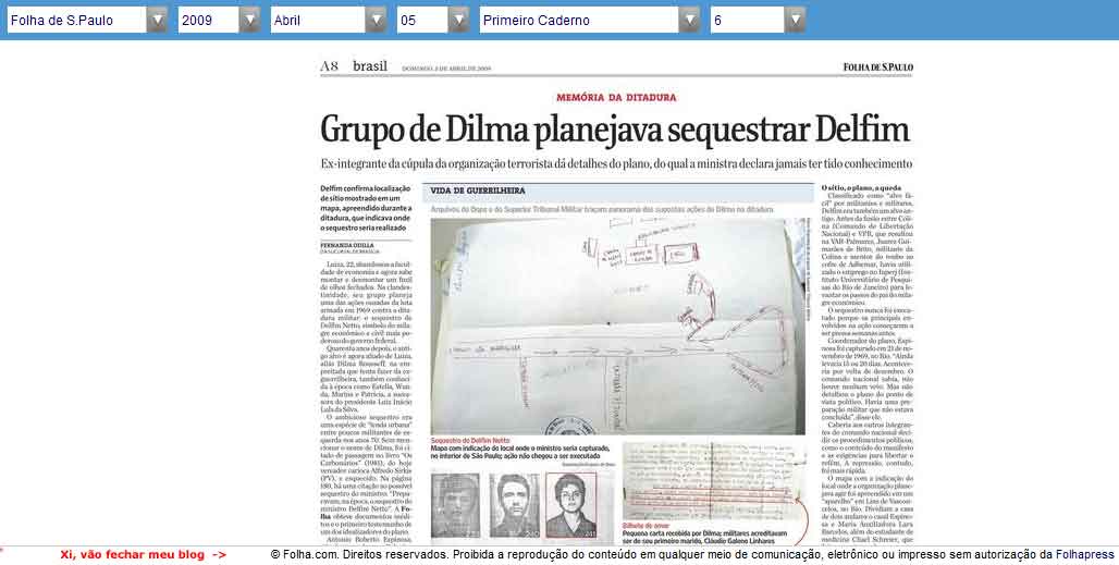 É claro que não carece de lembranças as tantas difamações do jornal contra a própria Dilma. Não sendo pouco o fato de ter ajudado a ditadura {{não acredite em mim}} ainda resolveu dizer que a ditadura, na verdade, foi uma “Ditabranda”: