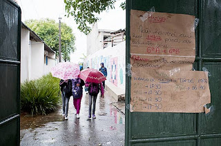 Na tarde de ontem (15), um cartaz colado no portão da escola estadual Roberto Mange, extremo sul de São Paulo, avisava: não haverá aula hoje para a 6ª A e 6ª B. Motivo: falta de cadeiras e carteiras.Os alunos das duas salas só descobriram que seriam dispensados das aulas de ontem ao chegar na escola, mas o fato não os surpreendeu.Desde que as aulas começaram para valer, anteontem, parte das turmas da escola têm se revezado, pois não há lugar para todos sentarem. Em um dia, algumas séries foram mandadas para casa; no seguinte, outras.Segundo alunos e pais ouvidos pela Folha na porta da escola, anteontem pelo menos uma turma da manhã (de 8ª série) e outra da tarde (de 5ª série) foram dispensadas.Ontem, além das duas salas de 6ª série que ficaram sem aula à tarde, alunos de ao menos uma 8ª série da manhã também voltaram para casa. Estudantes relataram que o problema se estende ainda a turmas da noite. “Ontem [anteontem] chegamos aqui adiantados, e nos deparamos com o cartaz dizendo que a turma da minha filha não teria aulas. Faço de tudo para meus filhos não faltarem na escola. É complicado”, afirma a dona de casa Marlete Oliveira Silva, 38, mãe de uma aluna da 5ª série que caminha por 25 minutos todos os dias para chegar com a filha à escola.“O pior é que eles avisam de última hora. As mães vêm com as crianças arrumadinhas e têm que voltar para trás”, diz a mãe de outro estudante Silene dos Santos, 45, que acompanhou a frustração dos pais nestes dois dias.Lucinda Correia Ferreira, 46, também conta que o filho aproveitou a manhã de ontem, quando deveria estar estudando, para ir ao dentista, já que a turma dele da 8ª série foi dispensada porque não havia onde sentar.DEMANDAProcurada pela Folha, a diretora da escola, que identificou-se apenas como Sueli, disse que não poderia dar entrevistas. Mas afirmou que a falta de cadeiras e carteiras se deve a uma grande “demanda de estudantes”.Depois dos questionamentos da reportagem, uma funcionária retirou o cartaz colado na porta da escola.Estudantes afirmam, no entanto, que as cadeiras e carteiras são velhas desde o ano passado e que neste ano nenhuma delas foi trocada.A Secretaria de Educação diz que a diretoria de ensino da região foi alertada na noite de anteontem e vai apurar.O colégio está localizado no Jardim Myrna, distrito do Grajaú, em uma das avenidas mais movimentadas da região. Ontem, estudantes de 11 e 12 anos que tiveram aulas, mas foram dispensados quase duas horas antes do horário por falta de professores, corriam pela rua.