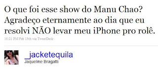 No último domingo tive a oportunidade única de não assistir ao show do Manu Chao. É, mas não precisa acreditar em mim;
