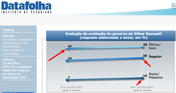 Pesquisas são indicadores que servem para avaliações, ajustes e até correções de rumo. Tomando-se as conclusões do Datafolha, tem-se que a situação é ainda muito confortável, mas com um leve sinal amarelo, de alerta. Primeiro, porque a percepção sobre governos começa pelos que têm ensino superior e decanta para as demais faixas. Segundo, porque o encanto com Dilma já não é mais o mesmo.